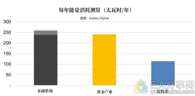 银河数据公司认为比特币能耗远低于金融系统和黄金产业,是一种可接受的能源使用。