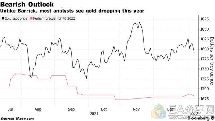 自2019年初以来一直领导巴里克的布里斯托是一名地质学家。他对于金价的态度比多数分析师更为乐观。许多分析师预测,金价将随着美联储今年的加息而下跌。外媒对分析师和经济学家的调查显示,第四季度黄金平均价格将降至1683美元/盎司。