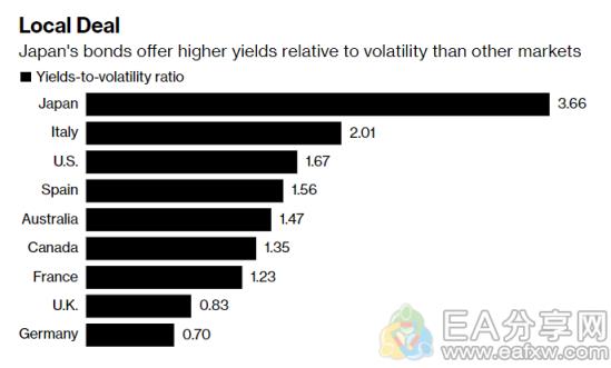 根据一项分析显示,经汇率对冲和波动性调整后的20年期日本国债收益率是同类型美债收益率的两倍多,同时也超过了包括意大利在内的其他六个发达国家的国债收益率。