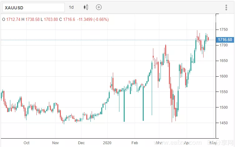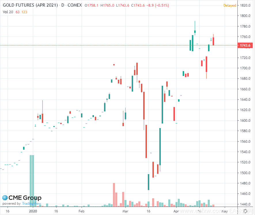 下图为CME的黄金期货交易价格: