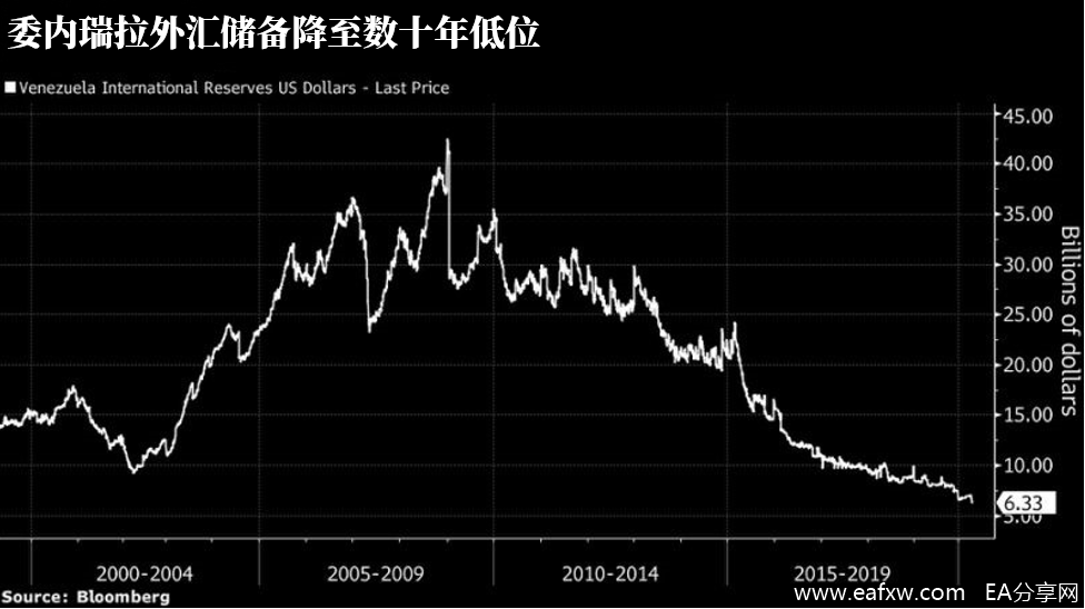 在将9吨黄金运给伊朗之后,委内瑞拉的外汇储备将降至63亿美元,创30年来的最低水平。