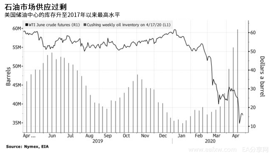 油价在3月份创下历史最大单月跌幅,紧接着在4月份创下历史性价格:-40.32美元/桶。虽然负油价仅仅维持了一天,在交割前夕回归到了11.57美元(此价格为CL2005期货价格,以NYMEX交易所公布的价格为准)。