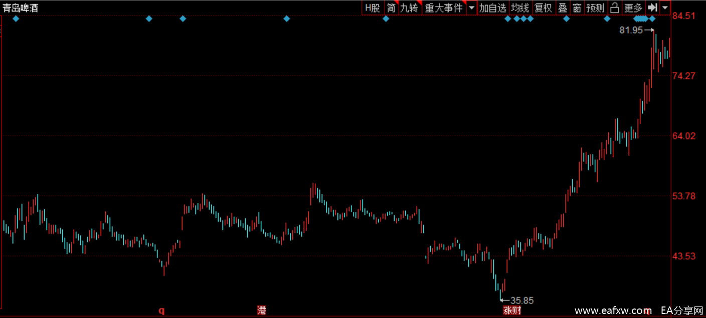 第二个例子是青岛啤酒,Rinly在2019年3月份以30多块的价格买入青岛啤酒。