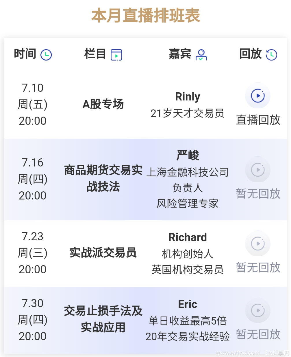 VIP新栏目:各领域大咖与实战交易员每周直播,助大家拓宽交易眼界,了解市场最新动向。
