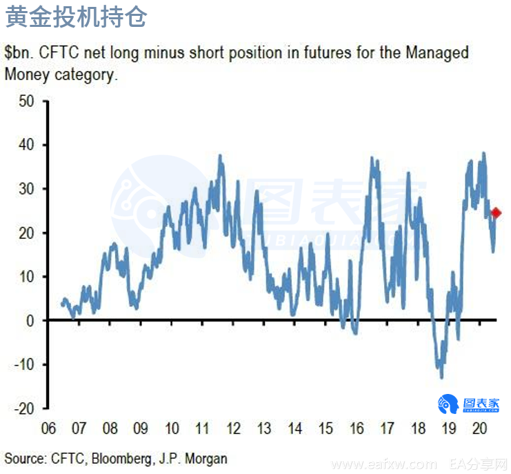 摩根大通的结论是:“总而言之,无论从散户投资者的黄金配置,还是对冲基金对黄金期货的投机头寸来看,我们都认为金价还有进一步上涨的空间。”