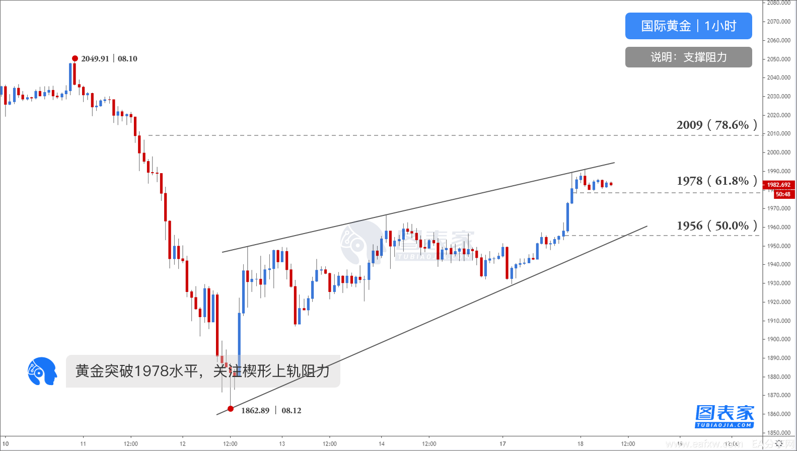 若价格受阻回落、跌破1978支撑,则见斐波那契50%回调位1956。