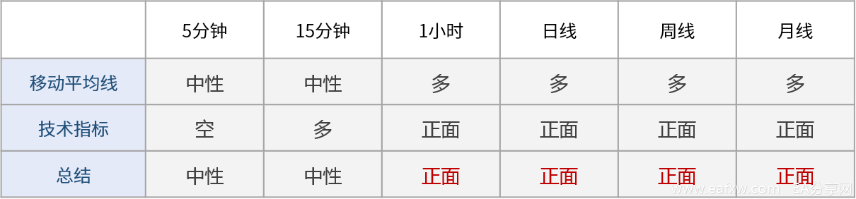 多周期技术信号显示日内市场情绪看涨:短线看张(5分钟,15分钟,1小时),中线看涨(日线),长线看涨(周线,月线)。