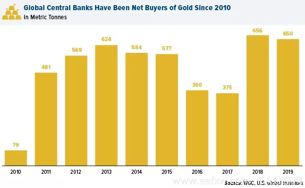 虽然今年央行黄金购买量可能较2019年有所放缓,但上个月哈萨克斯坦、土耳其、蒙古、印度、柬埔寨、卡塔尔和俄罗斯等国央行都买入了黄金。
