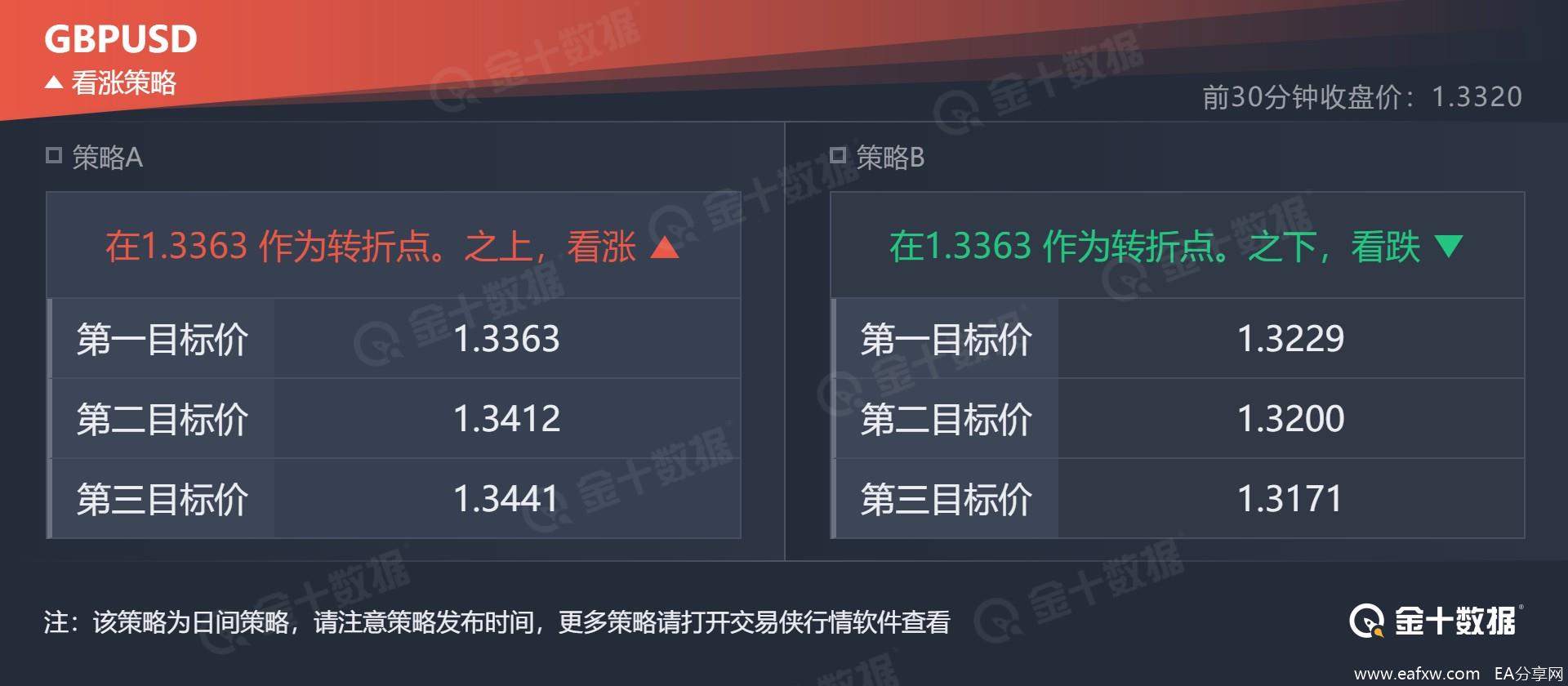 英镑/美元当前价位处在其20天及50天移动平均线下方(1.3337和1.3327)。亚盘关键转折点为1.3363,当前运行在1.3363下方,留意1.3229、1.3200支撑。若之后能突破1.3363,则留意上方目标位1.3412和1.3441。