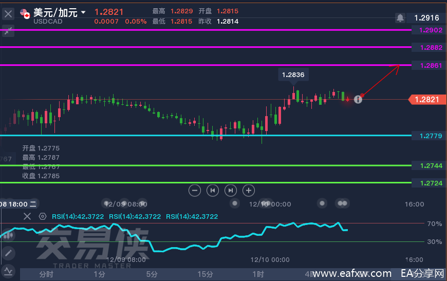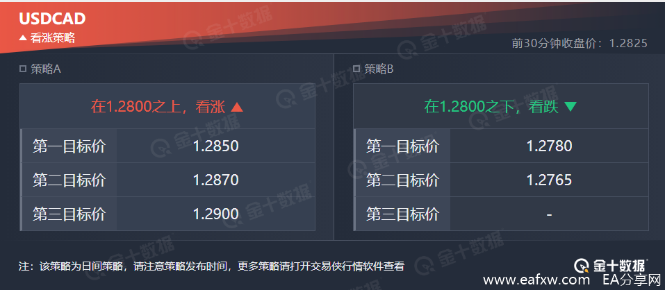 美加运行于1.28关口上方,预计这个位置提供一定支撑,上方有挑战1.2850和1.2870的机会;若行情跌至1.28关口之下,留意下方1.2780和1.2765支撑是否稳固。
